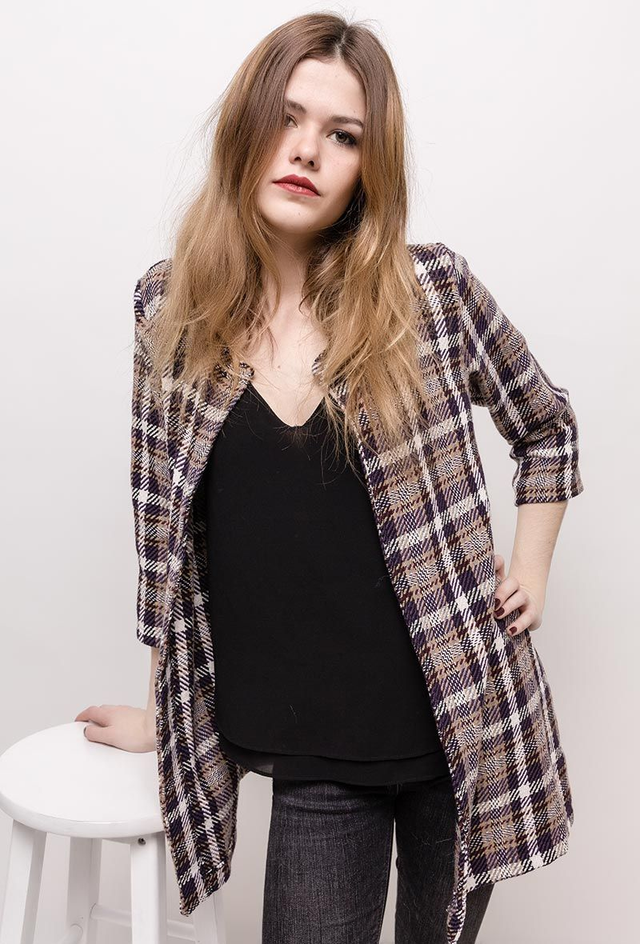 VESTE LONGUE A CARREAUX